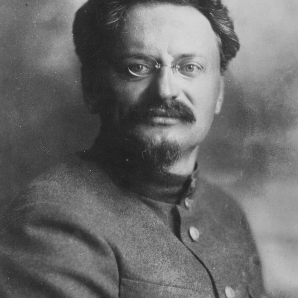 - Lev Bronstein (Trotski) (1879 -1940) – le fils d’un grand propriétaire foncier juif, il intégra des groupes révolutionnaires très tôt dans sa jeunesse. Passionné par le marxisme, il devient un journaliste engagé. Il devint l’un des dirigeants de la première révolution russe de 1905-1907. Il fut ensuite arrêté et exilé en Sibérie, mais s’est échappa et parti se réfugier aux États-Unis. Trotskifut l’un des principaux théoriciens du parti socio-démocratique en soutenant une approche plus démocratique du socialisme. À son retour en Russie, lorsque la révolution de février éclata, il se rangea du côté bolchévique.En août 1917, il fut accueilli au sein du cercle de Lénine, partageant ses idées. Il aida à renverser le gouvernement provisoire par la prise de contrôle des forces militaires de Petrograd. Après la révolution d’octobre, Trotski joua un rôle clé dans la victoire des Soviétiques dans la guerre civile, en devenant l’un des fondateurs, puis commandant en chef, de l’Armée rouge. C’est le désir de Staline pour le pouvoir unique qui a conduit ce dernier à la mise à l’écart de Trotski. En 1929, il fut expulsé de l’Union soviétique, vécut au Mexique où il écrivit un certain nombre de livres historiques, et travailla au renforcement du mouvement communiste international. Il fut tué par un agent du renseignement soviétique en 1940.