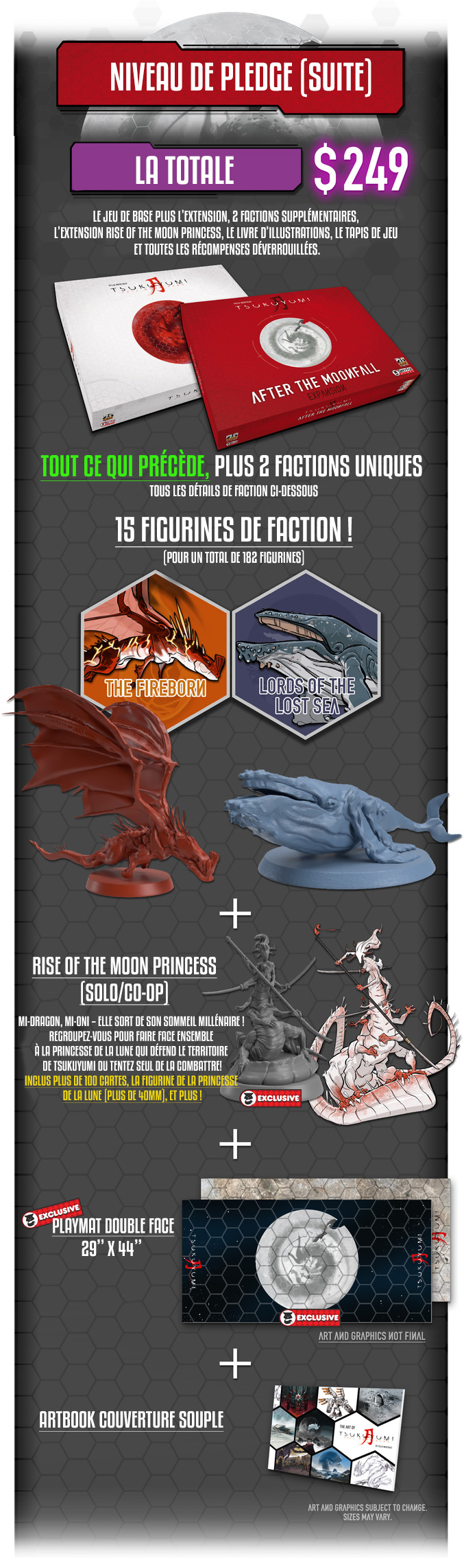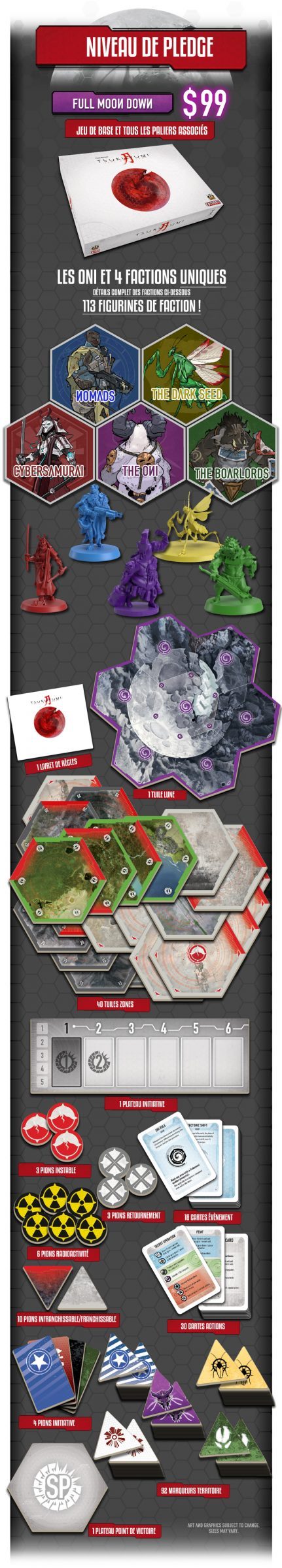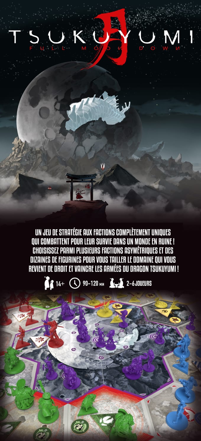 Tsukuyumi est un jeu de stratégie asymétrique avec une grande profondeur de jeu et une histoire riche et [engageante]. Il a déjà eu un lancement il y a quelques temps, applaudi par les critiques aux Etats-Unis tels que Dice Tower et la communauté de Boardgamegeek. Cette fois-ci, nous incluons en plus des figurines pour donner au jeu la production qu’il mérite. Et quelques belles surprises supplémentaires vous attendent, rejoignez-nous !