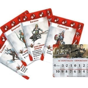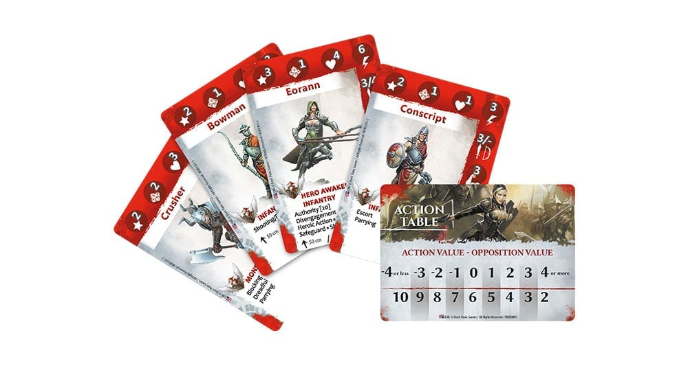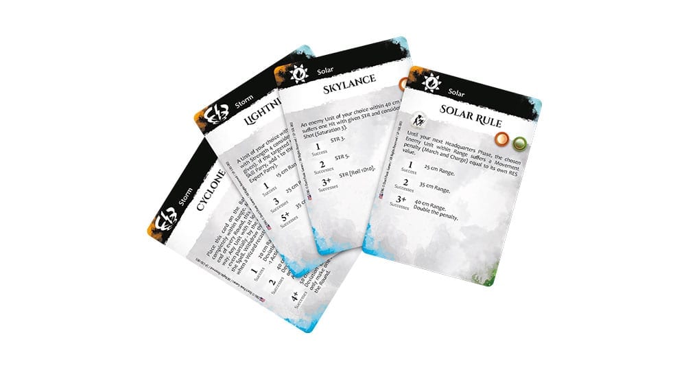 Chaque fois qu’un joueur utilise un point Action, il avance son jeton armée d’une case sur le Time Path. Le joueur actif est toujours celui dont le jeton armée se retrouve en dernier sur le Time Path. Ainsi, un joueur téméraire pourrait donner l’ordre à l’une de ses unités de réaliser un incroyable exploit, en utilisant 3 points Action. Puis, la main passerait à l’autre joueur, qui aurait donc 3 points Action à dépenser comme il le souhaite avant que son adversaire ne joue à nouveau. Avec 3 points Action, il déciderait d’activer trois unités avec des exploits basiques, par exemple, ce qui lui donnerait potentiellement un avantage tactique en faisant marcher son armée sur de précieuses sources élémentaires.