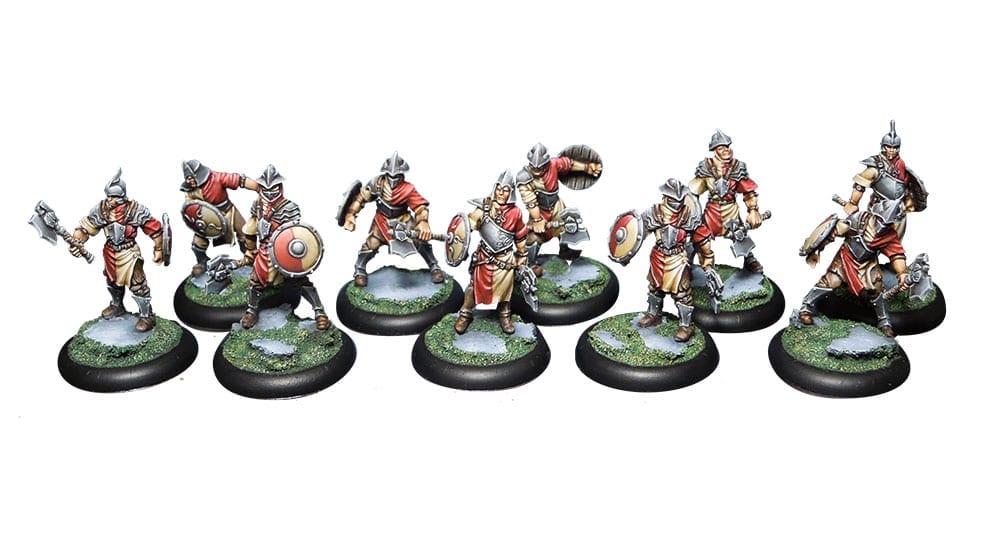 Cette modularité s’applique également aux Héros de Drakerys. De la même manière que pour les troupes, la plupart des boîtes de Héros contiennent un unique corps, mais trois jeux d’armes différents permettant d’assembler autant de figurines.