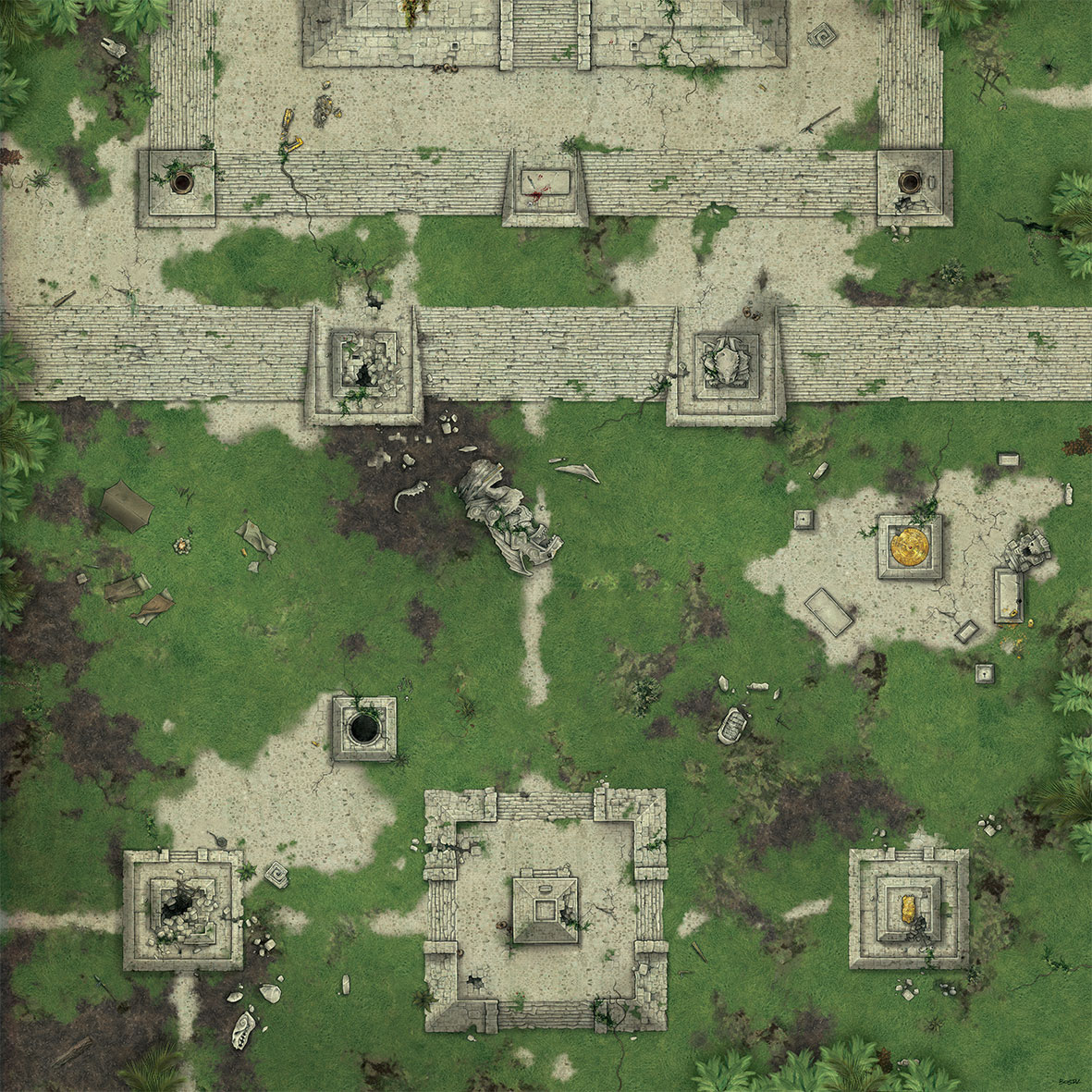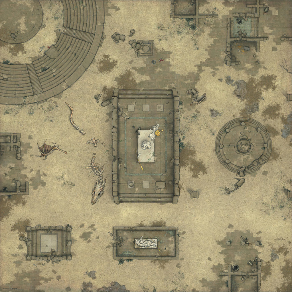Les tapis sont parfaits pour rendre votre expérience de jeu réaliste ! Ils serviront de véritables décors mais éviteront aux cartes et figurines de s’abîmer. Découvrez quatre lieux différents : une vieille ville, une ville antique, un champ de bataille ou encore un sanctuaire dans la jungle.