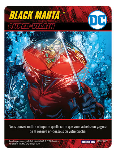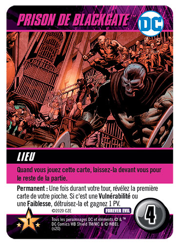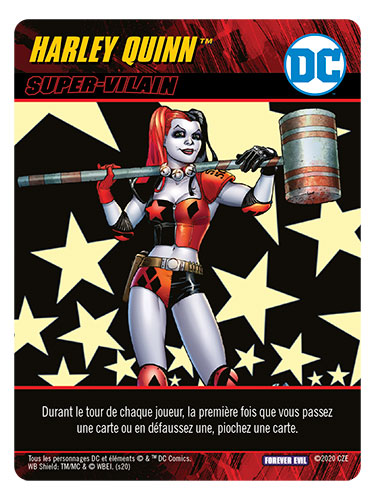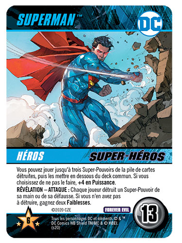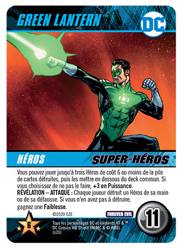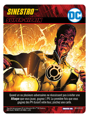 La destruction de cartes est essentielle dans cette version, et vous ne vous en sortirez qu’en construisant puis réduisant votre deck jusqu’à ne conserver que les cartes nécessaires à votre victoire ! Forever Evil introduit des jetons de Points de Victoire à la gamme de jeux DC COMICS Deck-Building Game ! Provoquez vos adversaires avec vos richesses accumulées tandis que les autres joueurs ne pourront qu’estimer tant bien que mal leur réussite.
