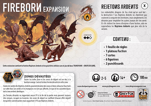 Cette extension ne contient que la faction Rejetons Ardents et ne peut être utilisée sans le jeu de base TSUKUYUMI – CHUTE DE LUNE.