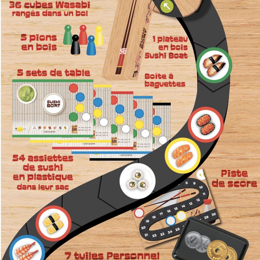 Vous allez découvrir tous les plaisirs de la dégustation de sushis ! Plus vous en gouterez de différents, plus vous empilerez d’assiettes identiques et plus vous marquerez des points. Restez attentifs, car à tout moment un autre joueur peut lancer un Défi Wasabi ! Mais pas de panique, notre aimable personnel est là pour vous aider.